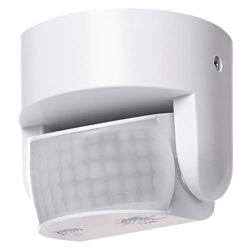 - Ein Bewegungsmelder mit einem Erfassungsbereich von 180 Grad und einer Reichweite von 12 Metern, ideal für den Innen- und Außenbereich