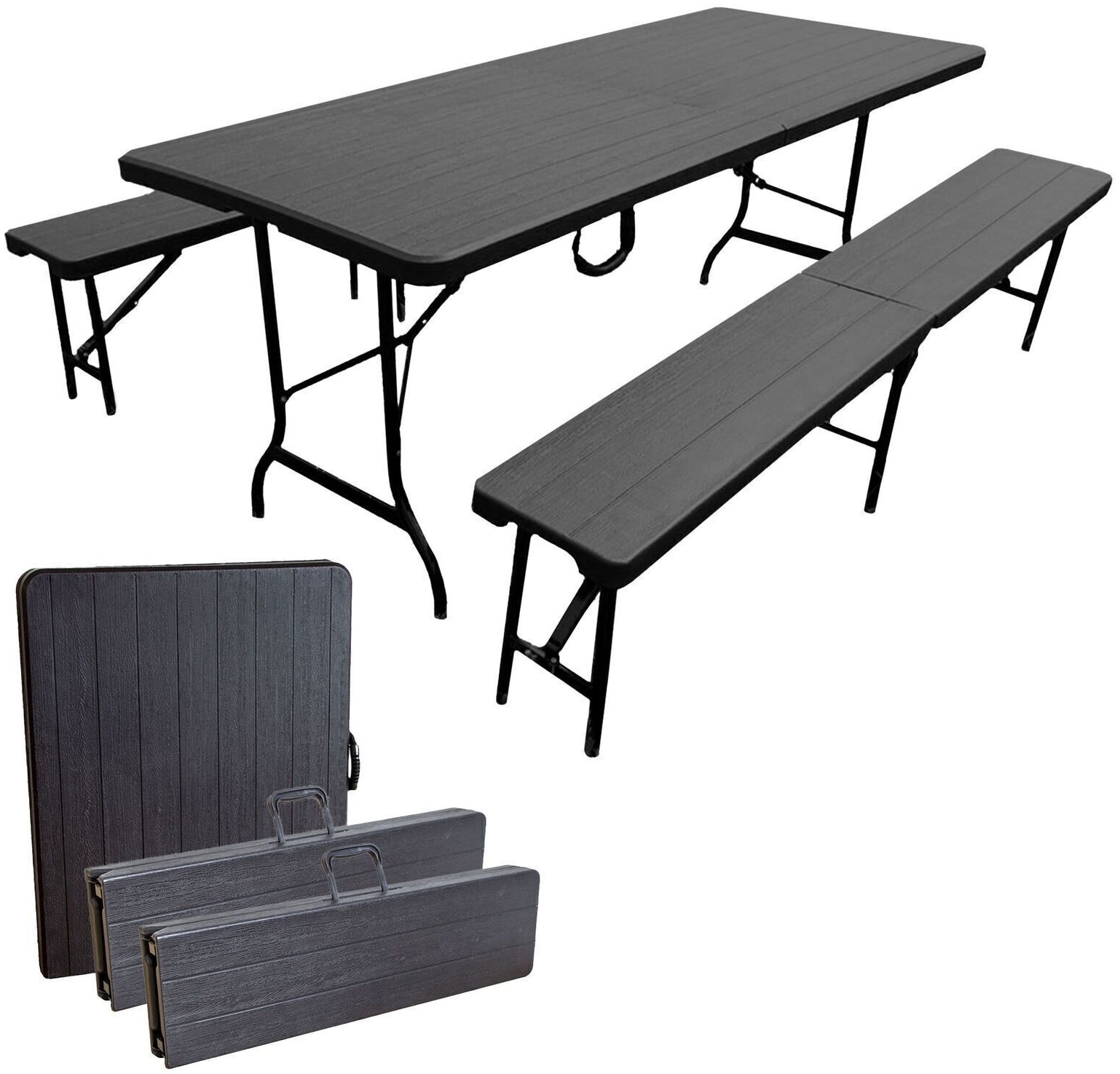 | Name | Bierzeltgarnitur Set mit 2x Bierbank und 1x Buffettisch, schwarz, klappbar |