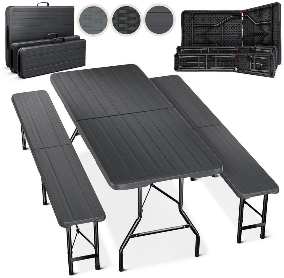 Name Blumtal Bierzeltgarnitur 3er Set - 2X Bierbank + 1x Biertisch - tragstarke Biertischgarnitur klappbar für 8 Personen - Bierbankgarnitur mit Tragegriff - Biergartengarnitur in Holz-Optik Anthrazit