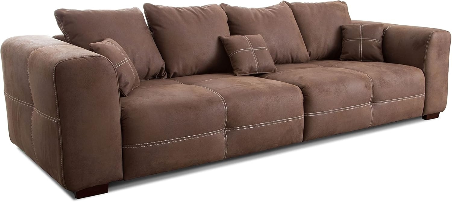 | Name | Cavadore Big Sofa Mavericco / Große Couch im modernen Design in Lederoptik / Inklusive Rückenkissen und Zierkissen / 287 x 69 x 108 cm (BxHxT) / Mikrofaser Braun |