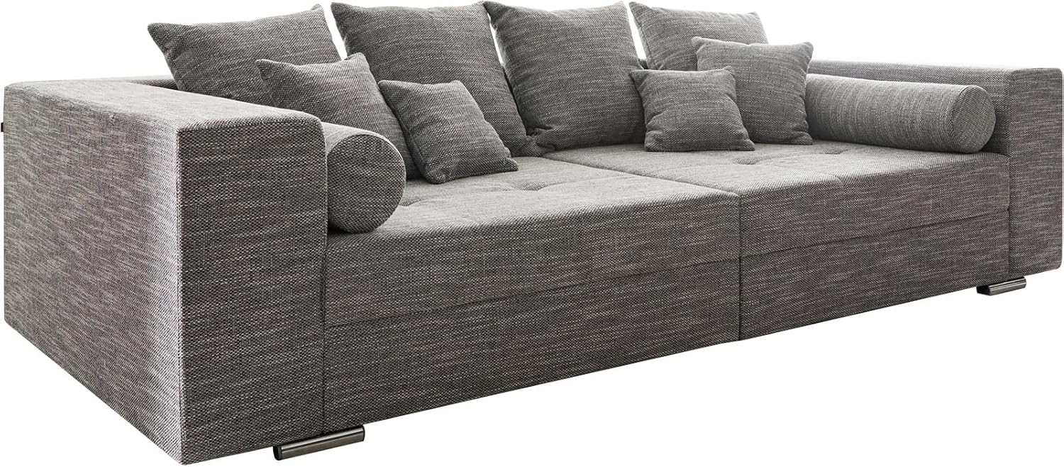 | Lieferumfang | 1x Sofa, 4x Kissen (50x50 cm), 2x Kissen (40x40 cm), 2x Kissen (35x35 cm), 2x Nackenrolle (76 cm) |