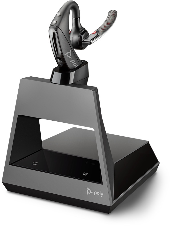 Plantronics Bluetooth-Mono-Headset Voyager 5200 Office (1-way), WindSmart-Technologie, Adaptive Mikrofone, IPX4, Taste für Sprachsteuerung, NFC, Ladestation mit USB-A, Schwarz