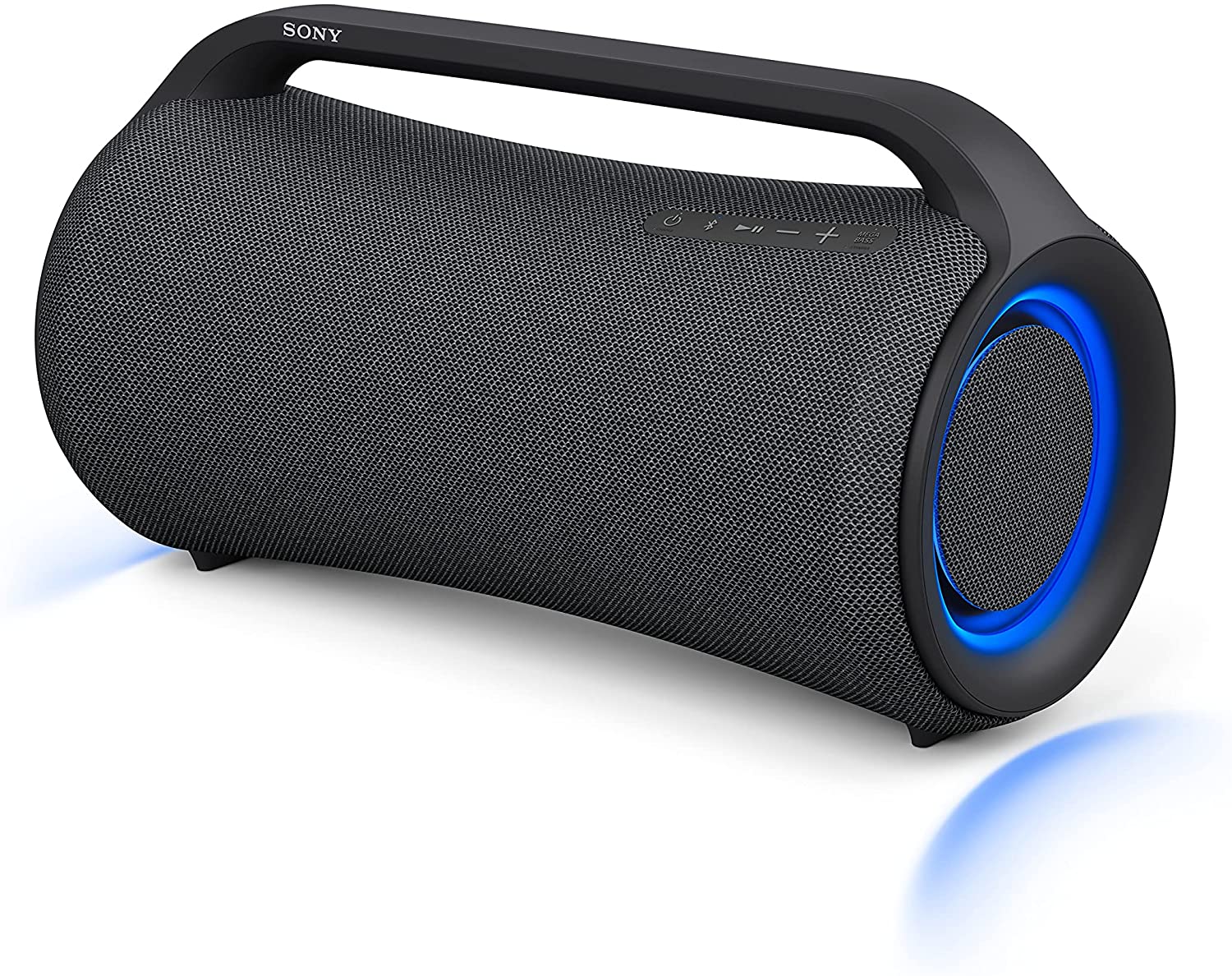 Lichtshow mit Sternenlichtern, coolen Lichtspuren und Stroboskop-Effekten, KI-Sound-Boost, Multi-Speaker-Konnektivität, Karaoke-EQ-Abstimmung.