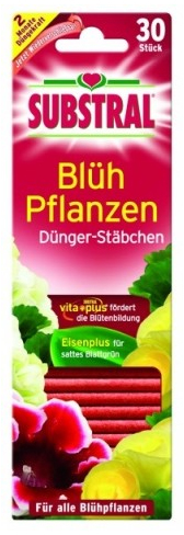 - SUBSTRAL Blühpflanzen Dünger-Stäbchen bieten eine langfristige Nährstoffversorgung für blühende Pflanzen.