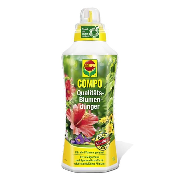 - Der Compo Qualitäts-Blumendünger ist ein mineralischer Universal-Flüssigdünger, der alle Haupt- und Spurennährstoffe für Zimmer-, Balkon- und Terrassenpflanzen enthält.
