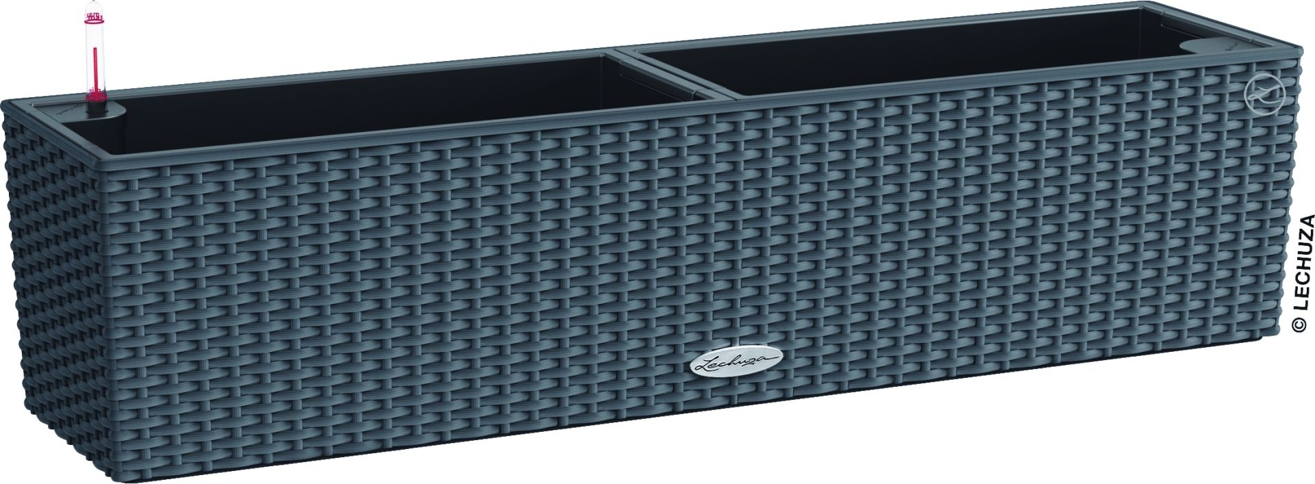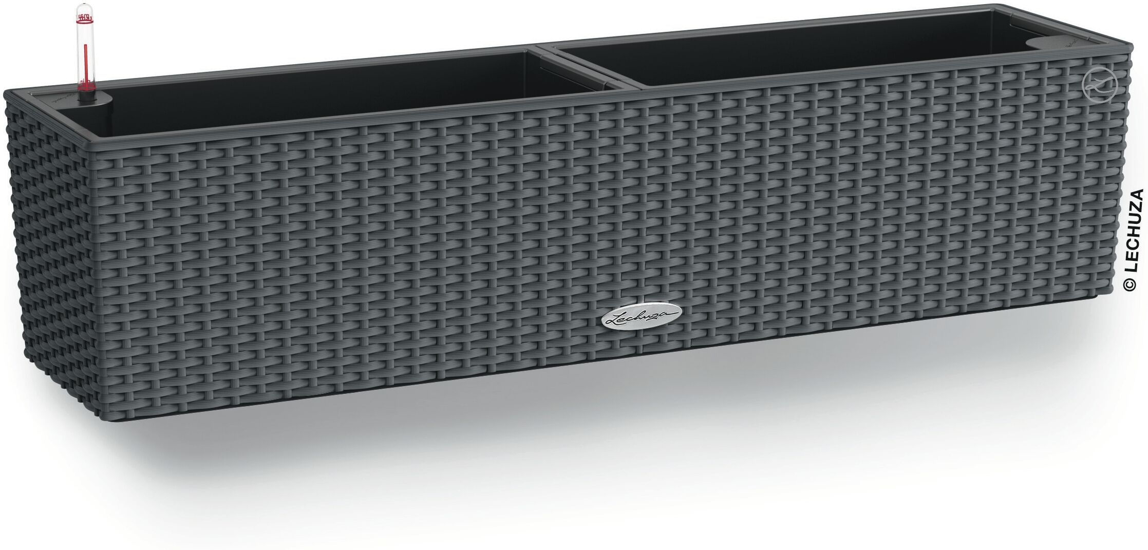 Das LECHUZA BALCONERA Cottage 80 granit 15612 ist ein Pflanzgefäß mit integriertem Bewässerungssystem. Das hochwertige Kunststoffmaterial ist UV- und witterungsbeständig, langlebig und bruchsicher. Mit seiner täuschend echten Flechtoptik verleiht es Ihrem Garten, Ihrer Terrasse oder Ihrem Balkon einen rustikalen Landhaus-Flair. Das Pflanzgefäß ist sowohl für den Innen- als auch für den Außenbereich geeignet und ermöglicht eine unkomplizierte Pflanzenpflege das ganze Jahr über. **Highlights** - Integriertes Bewässerungssystem: Versorgt Pflanzen zuverlässig mit der richtigen Menge an Wasser. - Wasserstandsanzeiger: Ermöglicht eine einfache Gießkontrolle. - Robuste Flechtoptik: Bringt rustikalen Landhaus-Flair in den Garten, auf die Terrasse und auf den Balkon. - Hochwertiges Material: UV- und witterungsbeständiger Kunststoff, zu 100% recycelbar, langlebig und bruchsicher. - Made in Germany: Qualität aus Deutschland. **Produkteigenschaften** - Maße: 79 x 19 x 19 cm - Pflanzeinsatz: 15,5 x 36,6 x 2 cm Stk. - Wasserspeicher: 5 l - Pflanzvolumen: 12 l **Lieferumfang** - 1x Pflanzgefäß BALCONERA Cottage - Inklusive Bewässerungssystem - Pflanzsubstrat LECHUZA-PON als Drainageschicht - Wechselbarer Pflanzeinsatz mit versenkbaren Griffen - Wasserstandsanzeiger