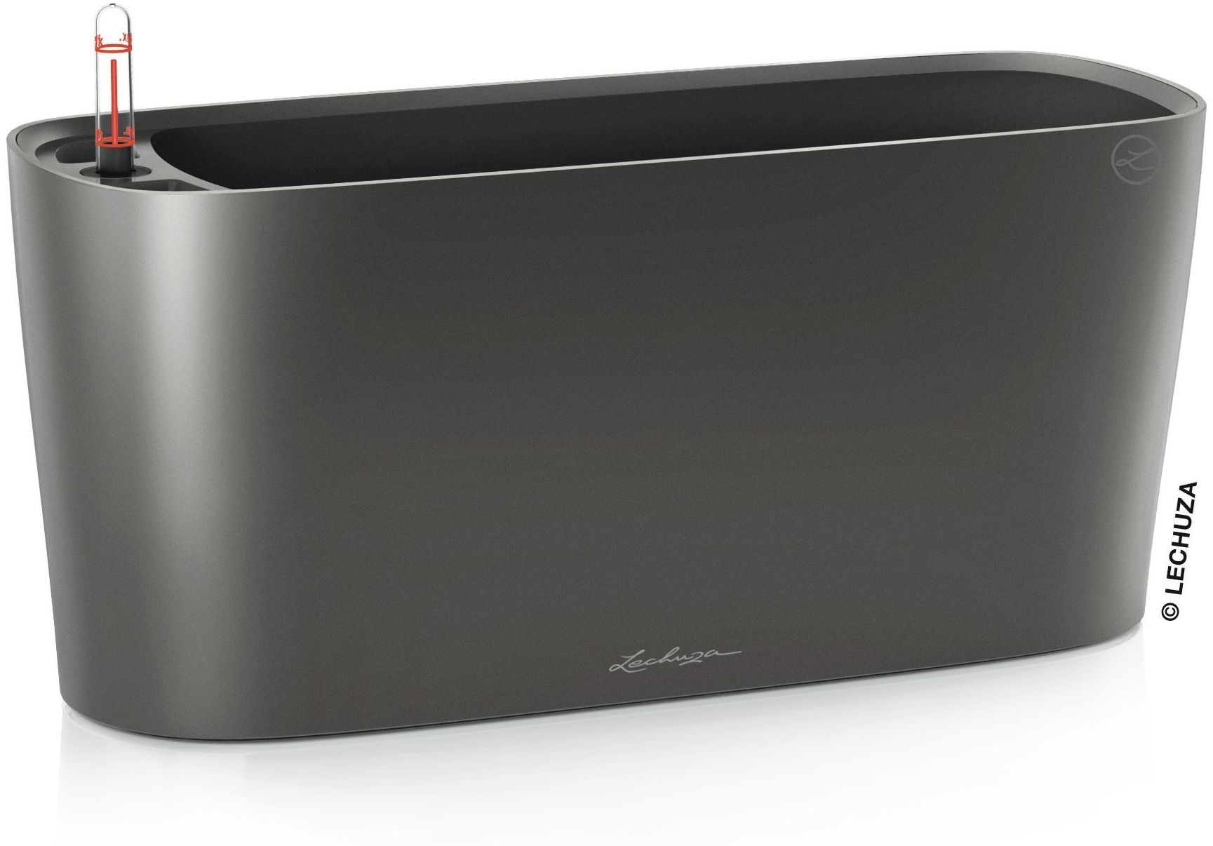 Der LECHUZA DELTA 20 in anthrazit metallic (Artikelnummer: 15563) ist ein elegantes Pflanzgefäß für den Innenbereich. Aus hochwertigem, bruchsicherem Kunststoff gefertigt, bietet es ein integriertes LECHUZA-Bewässerungssystem, das Ihre Pflanzen optimal mit Wasser versorgt. Der praktische Wasserstandsanzeiger ermöglicht eine einfache Kontrolle des Gießvorgangs. Mit einer hochglanzlackierten Oberfläche fügt sich das Gefäß stilvoll in jeden Wohnstil ein. **Highlights** - Integriertes Original LECHUZA-Bewässerungssystem: Versorgt Pflanzen zuverlässig mit der richtigen Menge Wasser - Wasserstandsanzeiger: Einfache Kontrolle des Gießvorgangs - Hochwertig lackierte Hochglanzoberfläche: Elegante und exklusive Optik - Für den Innenbereich geeignet: Passt perfekt zu allen Zimmerpflanzen - Made in Germany: Hochwertiger Kunststoff, zu 100% recycelbar, langlebig und bruchsicher **Produkteigenschaften** - Material: Kunststoff - Maße: 40 x 15 x 18 cm - Wasserspeicher: 2 l - Pflanzvolumen: 5 l - Pflanzeinsatz: 34 x 12,5 cm **Lieferumfang** - 1x Pflanzgefäß DELTA - Bewässerungssystem - Pflanzsubstrat LECHUZA-PON als Drainageschicht - Wechselbarer Pflanzeinsatz - Wasserstandsanzeiger