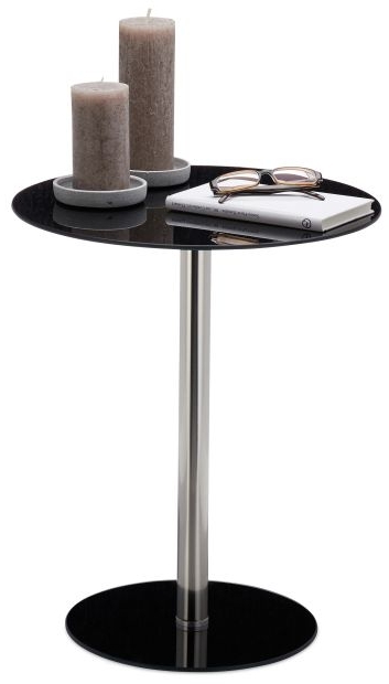 | Beschreibung | Der Beistelltisch aus Glas und Edelstahl überzeugt durch sein schlichtes und elegantes Design. Mit zwei runden Platten aus gehärtetem Glas und einem verspiegelten Standrohr aus Edelstahl ist er vielseitig einsetzbar – ob als Couchtisch, Nachttisch oder Ablage im Büro. Die stabile Konstruktion sorgt für einen sicheren Stand, während die maximale Belastbarkeit von 35 kg für praktische Nutzungsmöglichkeiten spricht. **Highlights** - Schlichtes, elegantes Design - Große, runde Glasplatte als Ablage - Verspiegeltes Standrohr aus Edelstahl - Ideal als Blumentisch, Teetisch oder Sofatisch - Einfache Montage **Produkteigenschaften** - Maße H x D: ca. 53x43 cm - Standfuß mit Glasplatte D: ca. 30 cm - Dicke Glasplatten: ca. 0,8 cm - Max. Belastbarkeit: ca. 35 kg - Gewicht: ca. 4,1 kg - Material: Glas, Edelstahl **Lieferumfang** - Beistelltisch rund in Einzelteilen - Inkl. Aufbauanleitung und -material - Dekoartikel sind nicht im Lieferumfang enthalten |