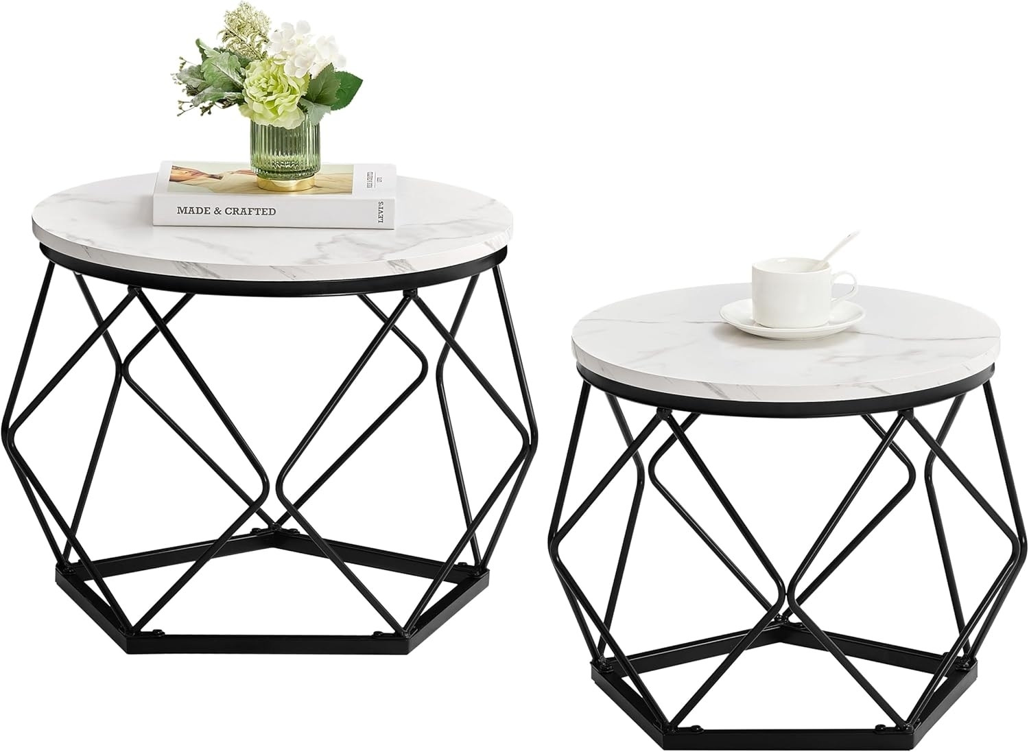 | Name | Vida Designs Brooklyn Runde Couchtische 2er Set Beistelltische Moderne Stahlrahmen Nesting Wohnzimmermöbel (Marmor) |