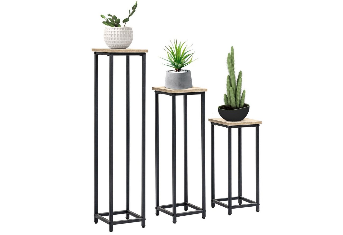 in BlumenständerOutsunny Blumenständer im Industriedesign3er Set aus Stahl und Holzoptik, für Garten und Balkon, Schwarz+Natur