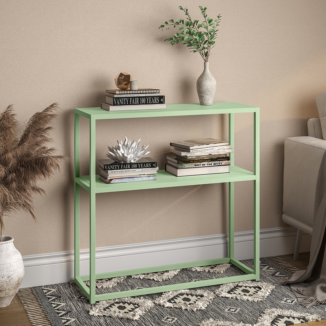 skølm 'Skadi' Konsolentisch mit zwei AblagenMetall, grün, 80x28x80 cm, Metallregal mit Stauraum