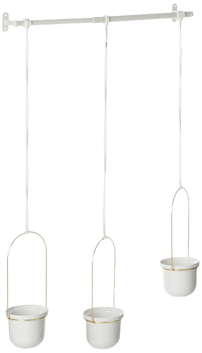 Umbra Triflora VaseHängeblumentopf, Wandvase, Blumenampel für Wand-und Deckenanbrinung, Melamin, Metall, Weiss-Messing, 3er Set