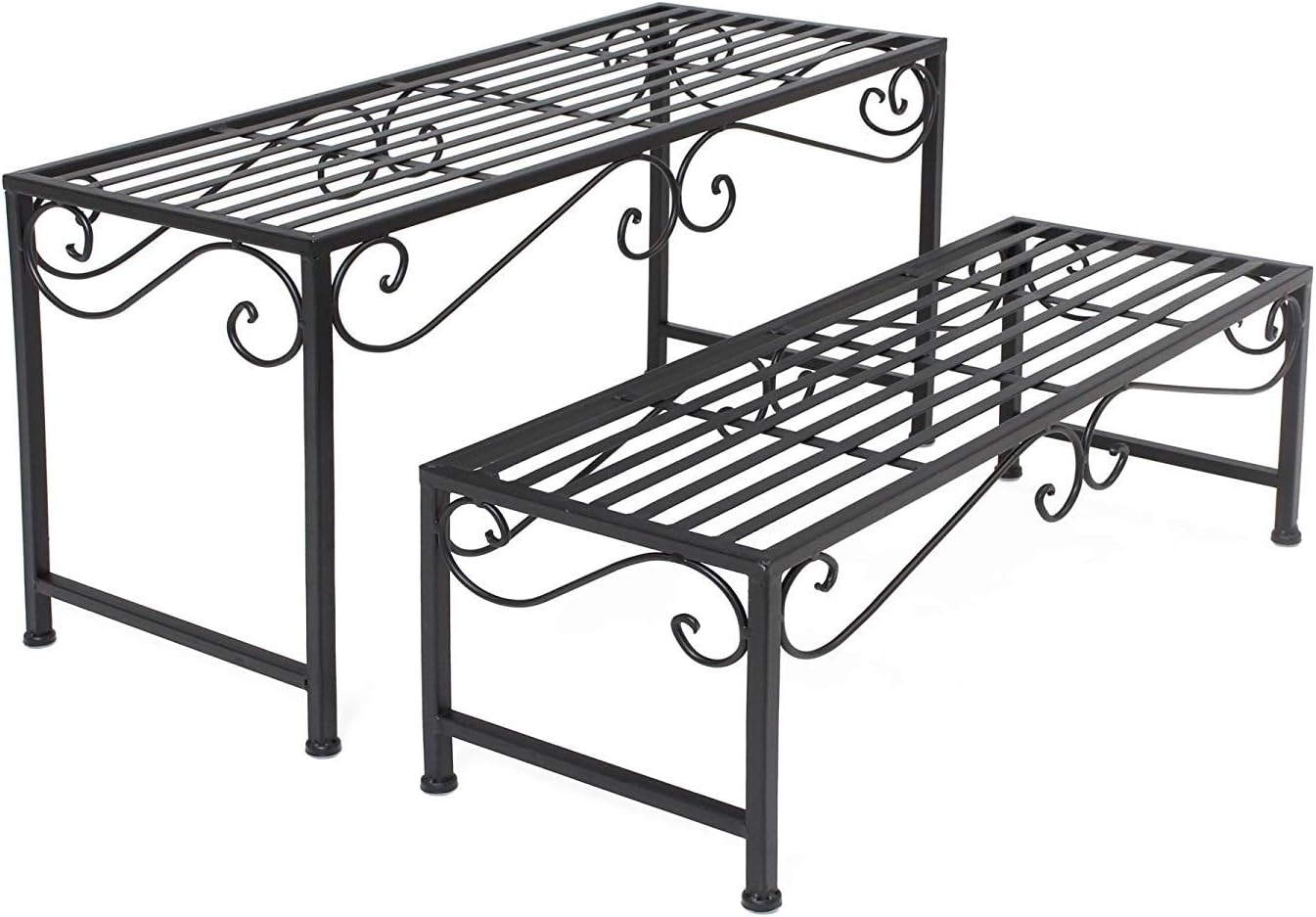 2x Blumenbank "Ranken" aus Metallschwarz, Blumentisch, Beistelltisch, Pflanzenständer