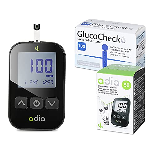 - Das adia Diabetes Starter-Set (mg vorwiegend für West-D) enthält ein Blutzuckermessgerät mit passenden Blutzuckerteststreifen, Stechhilfe und Lanzetten