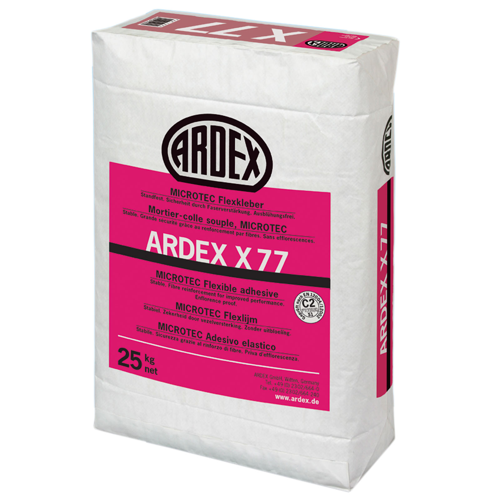 - Der ARDEX X 77 MICROTEC Fliesenkleber ist ein zementbasierter Flexmörtel, der die C2-Anforderungen nach EN 12004 erfüllt.
