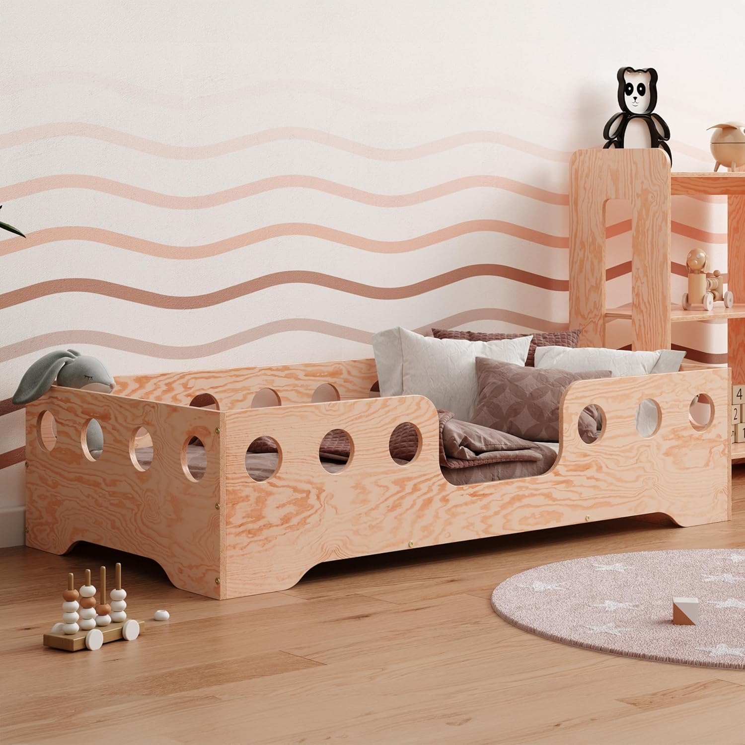 in Bodenbettensmartwood Kinderbett 70x140 | Holz | Bodenbett TILA 4 mit Rausfallschutz & Lattenrost und sichere Kanten | Montessori Betten für schnelle Montage | Bis 230 kg belastbar