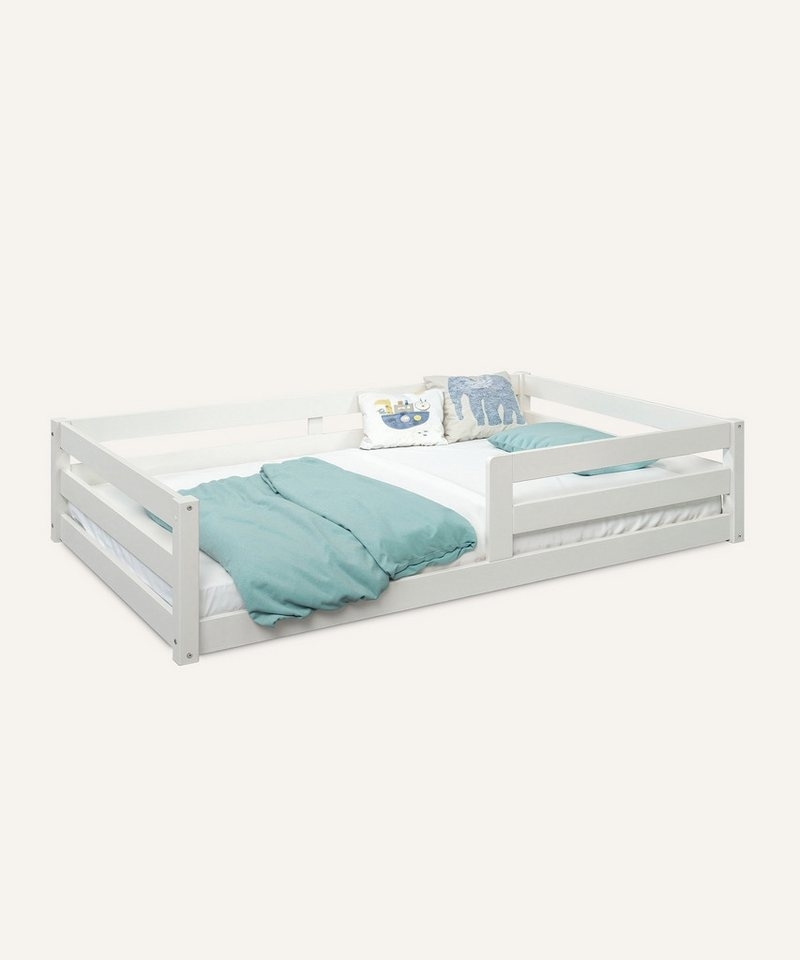 Ehrenkind Kinderbett Bodenbett 90x200 und 120x200 mit Rausfallschutz in Natur und Weiß .