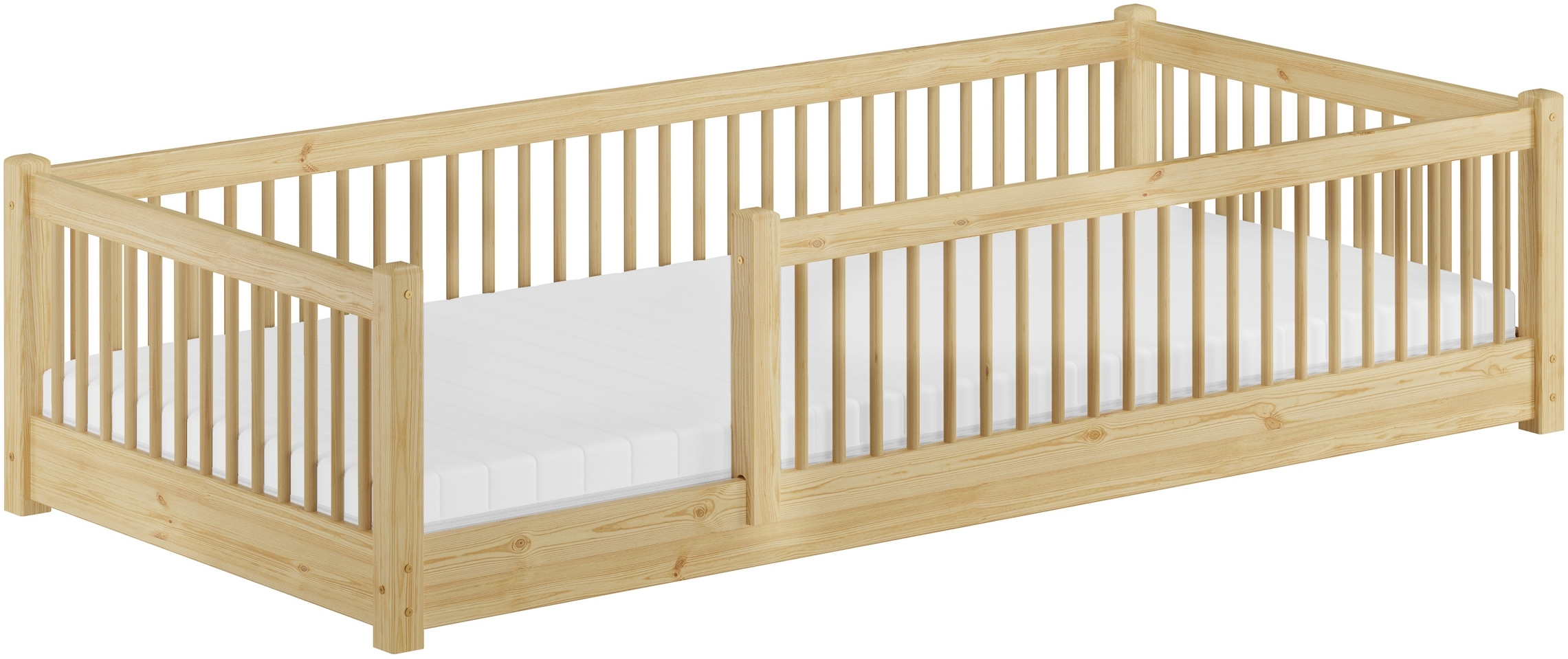 | Name | Kinderbett niedriges Bodenbett Kiefer natur 90x200 Kleinkinder Laufstall ähnlich Rollrost und Matratze inkl. |