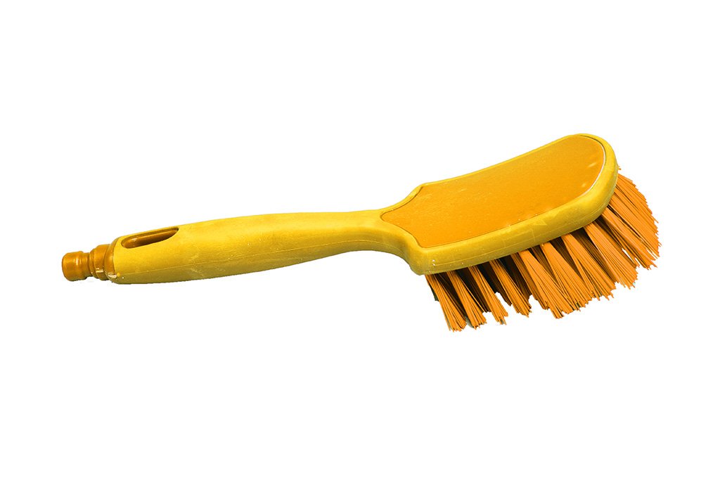Maya Professional Tools 52154-4 Stielbürste mit GummigriffWasserdurchlauf, Gewindeanschluss, harte Borsten, FBK-Lebensmittelhygiene, 300 mm x 75 mm, Gelb