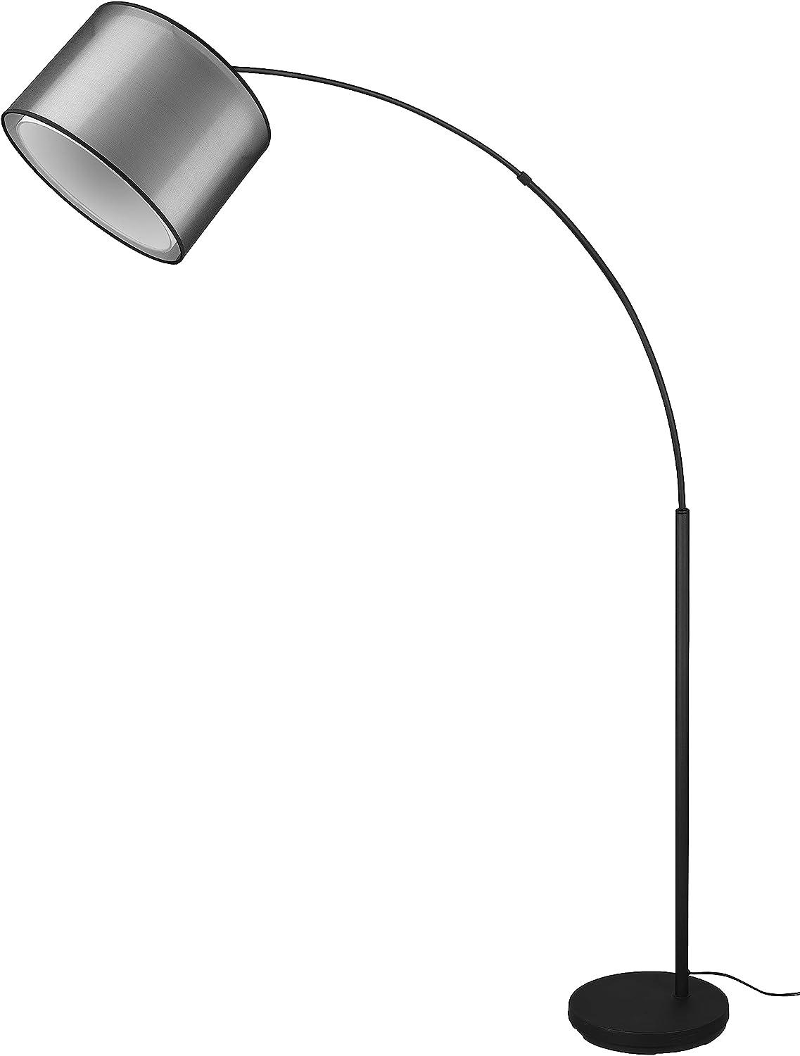 Die Bogenleuchte BURTON mit einem transparenten schwarzen Stoff Organza und einem weißen Innenschirm ist 171 cm hoch und hat einen Schirmdurchmesser von 35 cm. Sie vereint zeitloses Design mit einem gemütlichen Lichtambiente und ist ideal für moderne Wohnstile. Die E27 Fassung ist für Leuchtmittel bis maximal 10 Watt geeignet. Ein praktischer Fußschalter sorgt für eine komfortable Bedienung. **Highlights** - Zeitloses Design mit doppeltem Lampenschirm aus Stoff - Gemütliches Lichtambiente durch verschiedene Schirmfarben - Vielseitig in moderne Wohnstile integrierbar - Perfekt als Wohnzimmerlampe oder zur Flurbeleuchtung - Komfortable Bedienung über Fußschalter **Produkteigenschaften** - Abmessungen: Höhe 171 cm, Schirmdurchmesser 35 cm - Material: Stoff Organza transparent Schwarz innen Weiß - Fassung: E27 - Geeignet für Leuchtmittel bis max. 10 Watt **Lieferumfang** - Bogenleuchte BURTON mit Stoff Organza transparent Schwarz innen Weiß, 171 cm - Leuchtmittel nicht im Lieferumfang enthalten