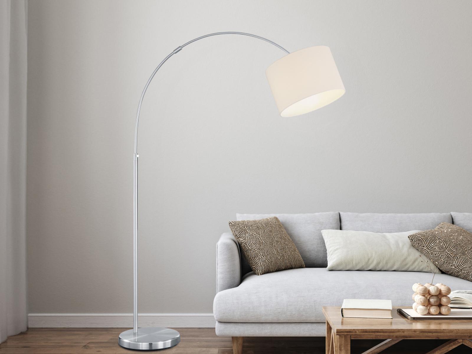 Große Bogenleuchte HOTEL Stoff Lampenschirm WeißHöhe 150-215cm