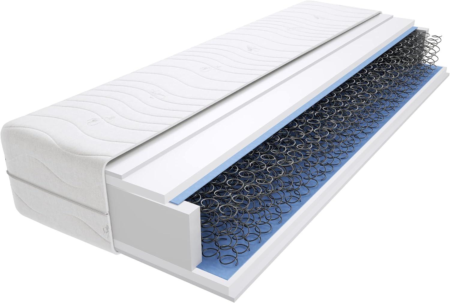 Die Matratze Sora in der Größe 70 x 140 cm bietet Ihnen eine doppelseitige Nutzung, wobei beide Seiten mittelhart sind und sich ideal zum Schlafen eignen. Sie ist hypoallergen und minimiert das Risiko von Allergien. Der Bonellfederkern sorgt für Oberflächenflexibilität und Festigkeit, während der hochflexible HR-Schaum mit einer Dichte von 35 kg/m³ für eine perfekte Körperanpassung und Belüftung sorgt. Der gesteppte Bezug ist abnehmbar und waschbar. **Highlights** - Doppelseitige Nutzung: Beide Seiten sind zum Schlafen geeignet. - Hypoallergen: Minimiert das Risiko von Allergien. - Bonellfederkern: Bietet Oberflächenflexibilität und Festigkeit. - Hochflexibler HR-Schaum: Mit einer Dichte von 35 kg/m³ für optimale Körperanpassung. - Gesteppter Bezug: Abnehmbar und waschbar für einfache Pflege. **Produkteigenschaften** - Maße: 70 x 140 cm - Mittelhart: Beide Seiten der Matratze sind mittelhart. - T25-Schaum: Hochwertiger Polyurethanschaum für gute Durchblutung und anatomische Anpassung. - Polsterabstandshalter: Verstärkt die Festigkeit der Matratze. - Klimafaser, Watte (150 g / 1 m): Sorgt für ausreichende Belüftung und Strapazierfähigkeit.