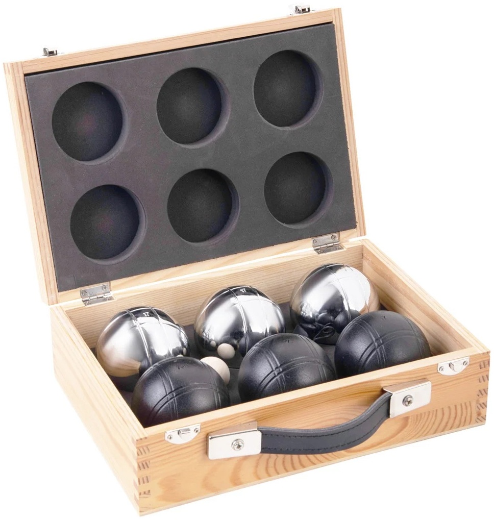- Kompletter Satz Petanque-Bälle in einer schönen Holzkiste