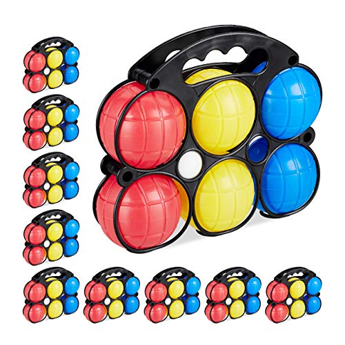 in Boule-SpieleRelaxdays Unisex Jugend SpielFarben, Kunststoff, & Tragekorb, Relaxdays Boccia Spiel 6 Petanque Kugeln in 3 Farben Kunststoff mit Zielkugel Tragekorb Boule, Bunt, H x B T ca. 19 22 7 cm EU