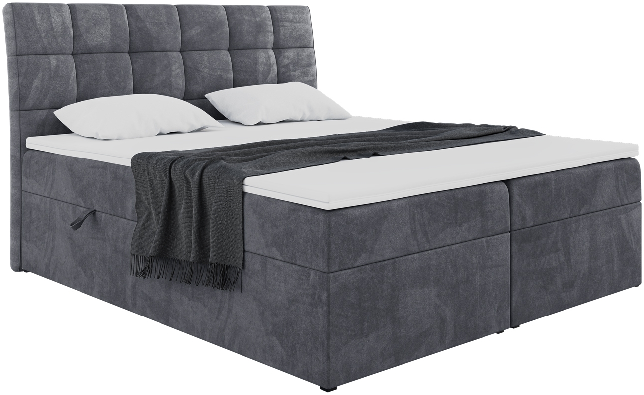 | Name | MEBLINI Boxspringbett DRAGO 140x200 cm mit Bettkasten - H4/Dunkelgrau Samt Polsterbett - Doppelbett mit Topper & Taschenfederkern-Matratze |