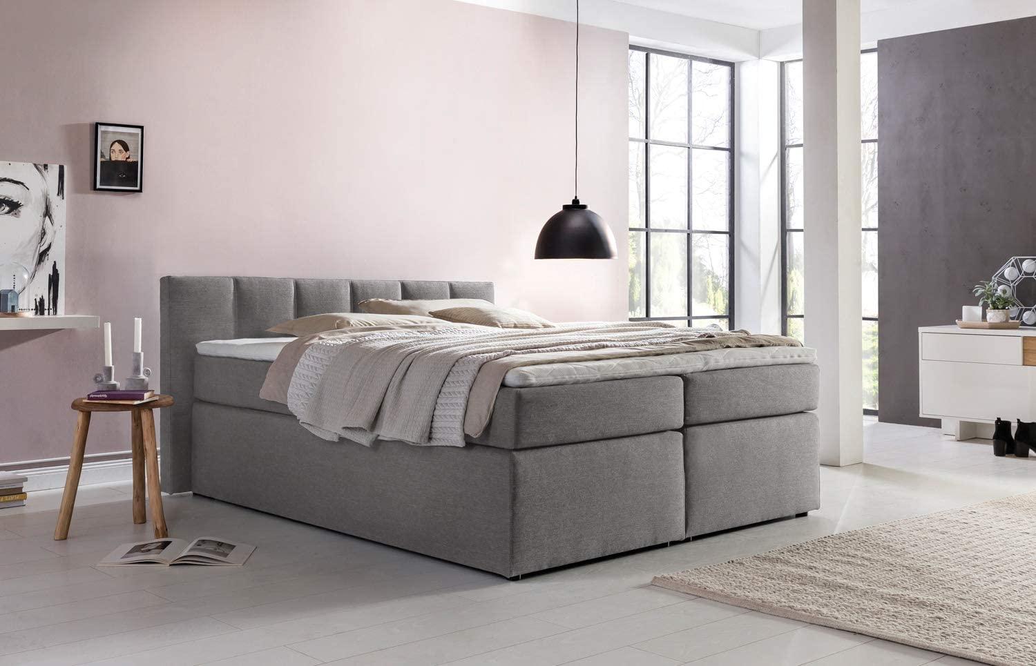 | Name | Furniture for Friends Doluna Valina Boxspringbett 180x200 cm H3 in Hellgrau niedriges Kopfteil 90 cm Ideal für Dachschrägen inkl. Visco Topper + 7 Zonen Taschenfederkern-Matratze |