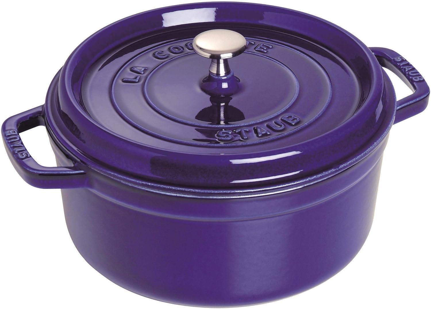 | Name | Staub 1102491 Cocotte-casserole, lid 24 cm, 3,8 L, suitable for induction, with Matt Black enamel on the inside of the pot round, Dunkelblau |