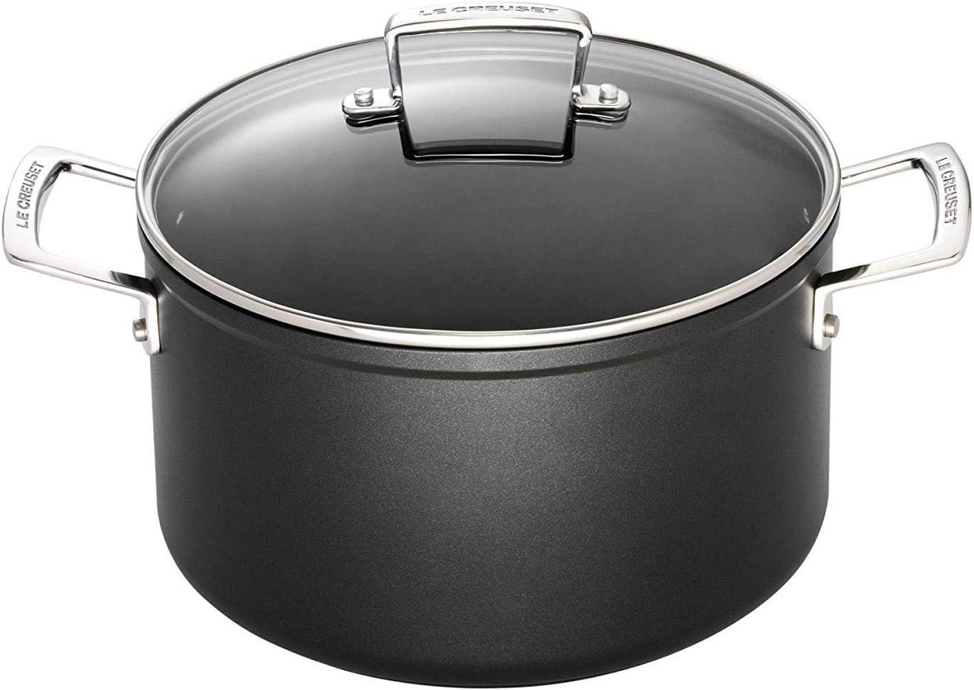 Le Creuset Aluminium-Fleischtopf mit einem Durchmesser von 24 cm ist das ideale Kochgeschirr für höchste Ansprüche. Mit einem Fassungsvermögen von 6,0 Litern und einer robusten, 3-lagigen Antihaftbeschichtung ermöglicht er müheloses Kochen und Reinigen. Der Topf ist für alle Herdarten, einschließlich Induktion, geeignet und überzeugt durch sein zeitloses Design. Der hitzebeständige Edelstahlknauf und die großen, genieteten Griffe sorgen für sicheren Transport. **Highlights** - Spülmaschinenfest für eine einfache Reinigung - Geeignet für alle Herdarten, einschließlich Induktion - Große Griffe für einfachen und sicheren Transport - Hitzebeständiger ergonomisch geformter Edelstahlknauf - Le Creuset Guss Lifetime Garantie für bis zu 30 Jahre **Produkteigenschaften** - Durchmesser: 24 cm - Fassungsvermögen: 6,0 Liter - Maße (LxBxH): 34,5 x 25,1 x 20,5 cm - Herdauflagefläche: 22,1 cm - Gewicht: 2,4 kg - Farbe: Anthrazit/Silber - Herstellung in Frankreich seit 1925 - Robuste Beschaffenheit, resistent gegen Hitze und Kälte - Glasdeckel schließt Aromen und Feuchtigkeit ein - Energiesparend durch optimale Wärmeverteilung und -speicherung **Lieferumfang** - 1x Le Creuset Aluminium-Antihaft Kochtopf mit Deckel, Ø 24 cm - Ausschluss von weiteren Zubehörteilen