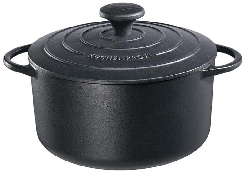Der Küchenprofi Bratentopf rund mit einem Durchmesser von 22 cm in klassischem Schwarz ist das ideale Kochutensil für Ihre Küche. Hergestellt aus hochwertigem Gusseisen mit einer strapazierfähigen Emaillierung, bietet er optimale Wärmeverteilung und Langlebigkeit. Der Topf eignet sich perfekt für Fleisch- und Gemüsegerichte und überzeugt durch sein stilvolles Design sowie die einfache Reinigung. **Highlights** - Ideale Größe für vielseitige Gerichte - Hochwertiges Material für optimale Wärmeverteilung - Stilvolles Design für jede Küche - Leicht zu reinigen - Robust und langlebig **Produkteigenschaften** - Durchmesser: 22 cm - Farbe: Schwarz - Material: Gusseisen mit Emaillierung - Ergonomisch geformte Griffe - Hitzebeständig bis 250 °C - Spülmaschinengeeignet **Lieferumfang** - Bratentopf rund 22 cm - Deckel aus Sicherheitsglas - Lieferung in Geschenkbox