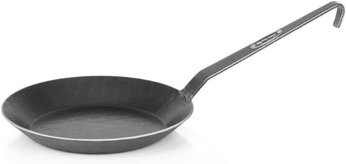 Die Petromax Schmiedeeiserne Pfanne bringt einzigartige Röstaromen in Ihre Outdoor-Küche. Das robuste Material ist hitzebeständig und ideal geeignet, um Bratkartoffeln, Steaks oder Gemüse scharf anzubraten. Durch die hervorragende Wärmeleitfähigkeit erreicht die Pfanne in kürzester Zeit hohe Temperaturen. Handhabung und Reinigung sind sehr einfach, weshalb die Schmiedepfanne auch für Einsteiger geeignet ist. Die mit jedem Gebrauch stärker werdende Patina verhindert das Anhaften der Speisen. Dieser chemiefreie Anti-Hafteffekt kommt auf natürliche Weise nach dem Einbrennvorgang zustande und macht die Petromax Schmiedeeiserne Pfanne im Laufe der Zeit noch robuster und widerstandsfähiger. Je stärker die Patina ausgebildet ist, desto weniger Öle und Fette benötigen Sie beim Zubereiten. Der lange Griff mit Haken bietet zum einen ausreichend Abstand zur Hitzequelle, zum anderen lässt sich die Pfanne so problemlos am Rucksack einhängen und direkt mit ins Abenteuer befördern. Die schmiedeeiserne Pfanne ist für alle Herdarten und das offene Feuer geeignet. Details: - Massive, robuste Pfanne aus Schmiedeeisen mit einem Durchmesser von 24 cm - Exzellente Wärmeleitfähigkeit des Schmiedeeisens - Perfekt zum Rösten und Braten - Äußerst langlebig - Robustes Material ist nahezu unzerstörbar - Immer bessere Brateigenschaften - Patina bildet sich mit jedem Gebrauch weiter aus - Langer Stilgriff für ein angenehmes Handling beim Benutzen der Pfanne Technische Daten: - Material: Schmiedeeisen - Modell: sp24 - Maße (H x B x T): ca. 2,8 x 24 x 24 cm - Durchmesser Pfanne oberer Rand: ca. 24 cm - Durchmesser Pfannenboden: ca. 17,8 cm - Höhe des Pfannenrandes: ca. 2,6 cm - Gesamtlänge mit Stiel: 46 cm - Gewicht: ca. 1,16 kg Lieferumfang: - 1x Petromax Schmiedeeiserne Pfanne sp24 - 1x Gebrauchsanleitung Weiteres Zubehör und abgebildete Dekorationen sind nicht Teil des Lieferumfangs.
