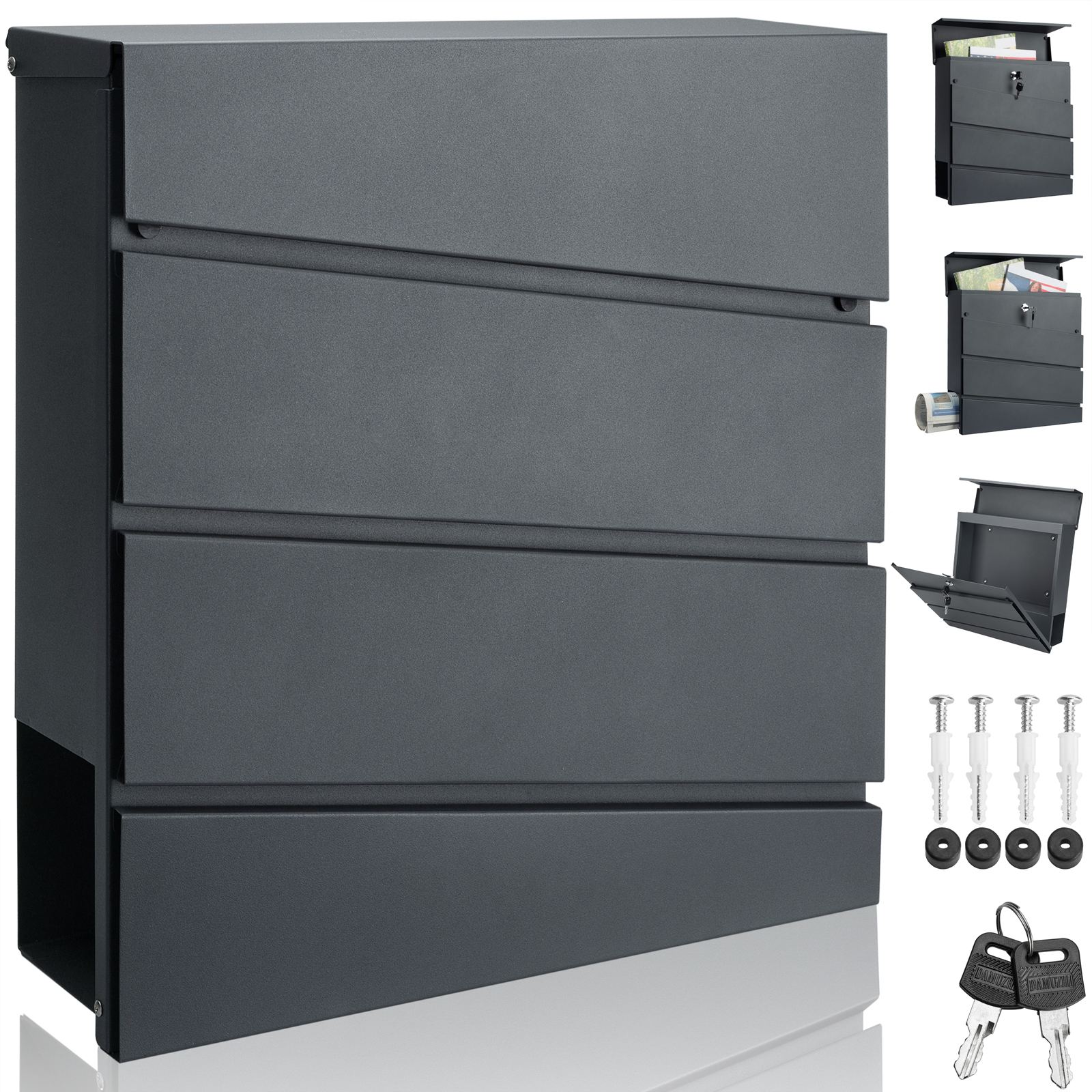 monzana Design Briefkasten Stahl anthrazit mit Zeitungsfach 2 Schlüssel Namensschild Wandbriefkasten