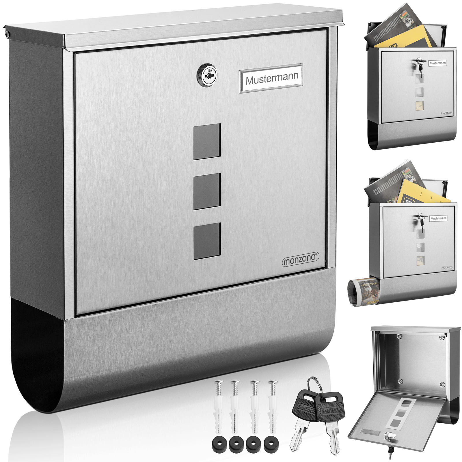 in Briefkästenmonzana Design Briefkasten Edelstahl silber mit Zeitungsfach Sichtfenster 2 Schlüssel Namensschild Wandbriefkasten