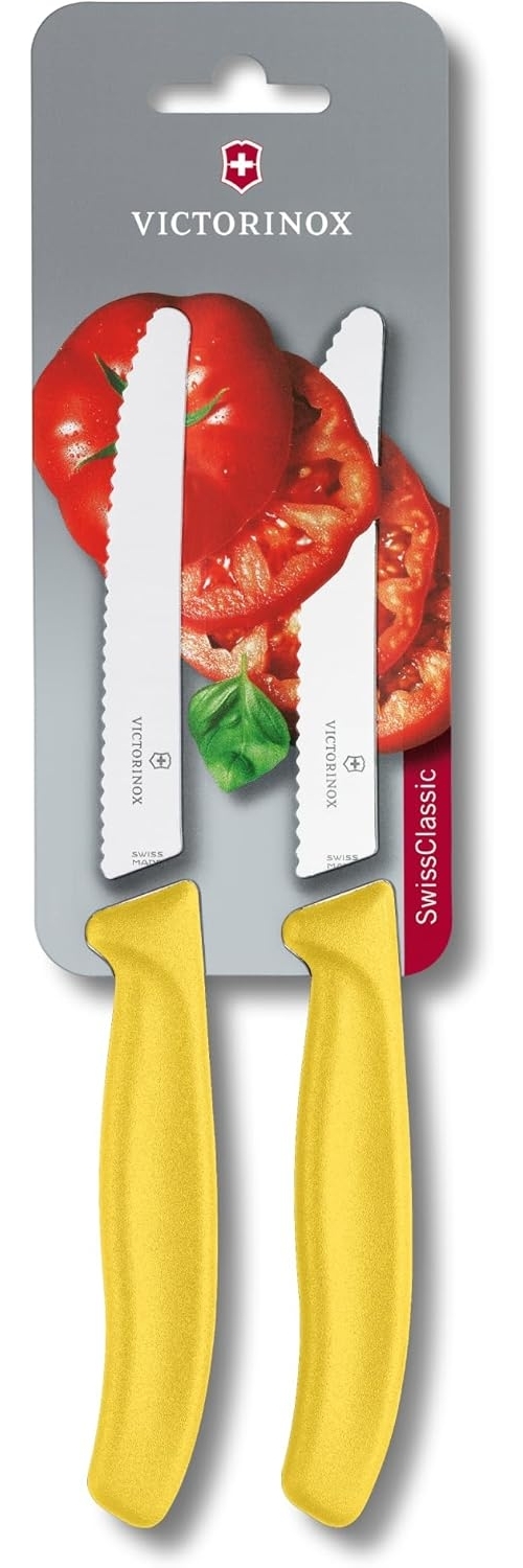 in BrötchenmesserVictorinox Swiss Classic, Profi Tomaten- und Tafelmesser, Extra Scharfe Klinge, Wellenschliff, 11 cm, Robuster Kunststoffgriff, Rostfreier Stahl, gelb