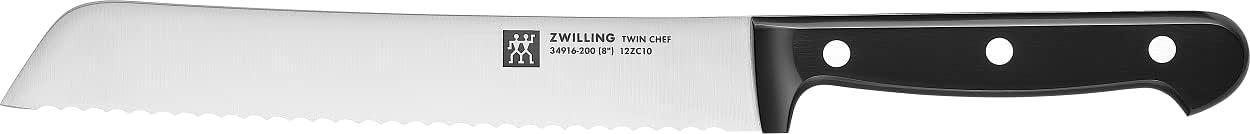 | Name | ZWILLING Twin Chef Brotmesser, Klingenlänge: 20 cm, Klingenblatt mit Wellenschliff, Rostfreier Spezialstahl/Kunststoff-Griff im Nietendesign, Schwarz |