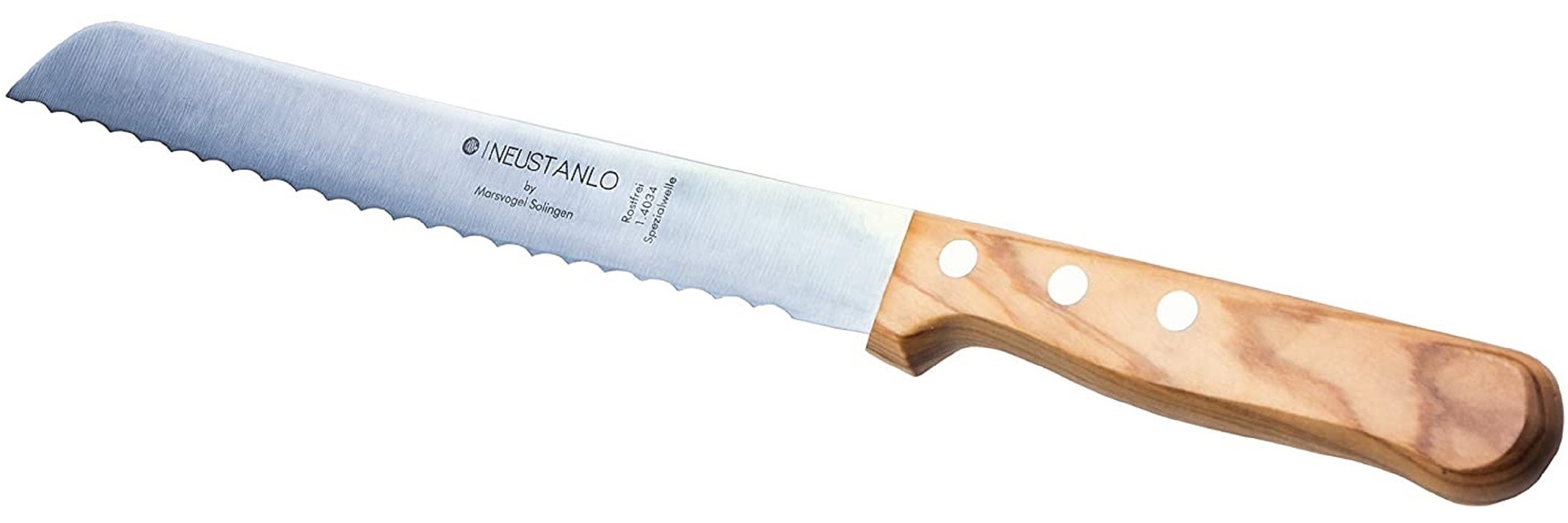 in BrotmesserMarsvogel | Brotmesser | Olivenholz | 2,0 mm Rückenstärke | mit Welle | Made in Solingen by Neustanlo