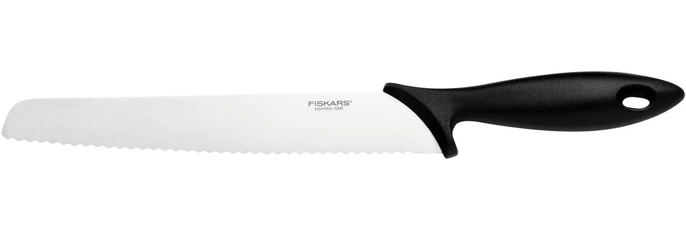 | Name | Fiskars Brotmesser mit Wellenschliff, Essential, Kunststoff/Edelstahl, Klingenlänge: 23 cm, Schwarz/Silber, 1065564 |