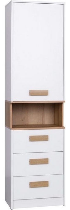 | Name | Marmex Möbel Grant 06 Standregal mit Türen geschlossen und Schubladen, laminierte Spanplatte, weiß+riviera Eiche, 52x195x40 cm |