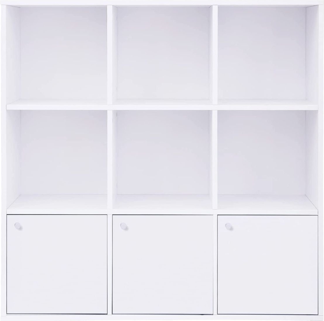 | Lieferumfang | 1x Bücherregal (mit 9 Boxen, 3 Türen), 1x Anleitung |