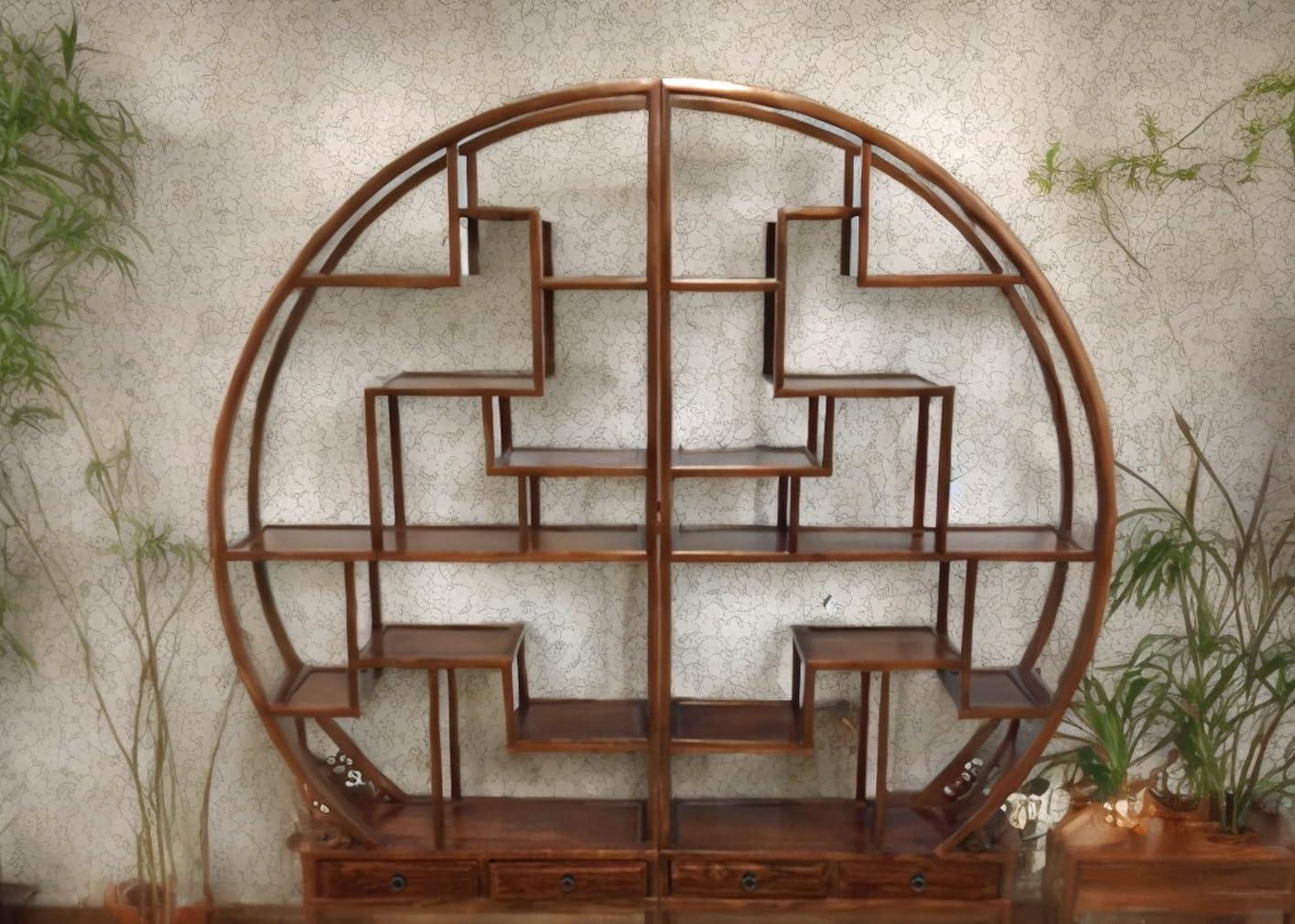 in BücherregaleChinesisches Rundregal Kastanie Schrank Raumteiler vintage asiatisch Kolonial-Stil Antik-Stil Wandschrank orientalisch Fernost shabby-chic Landhaus