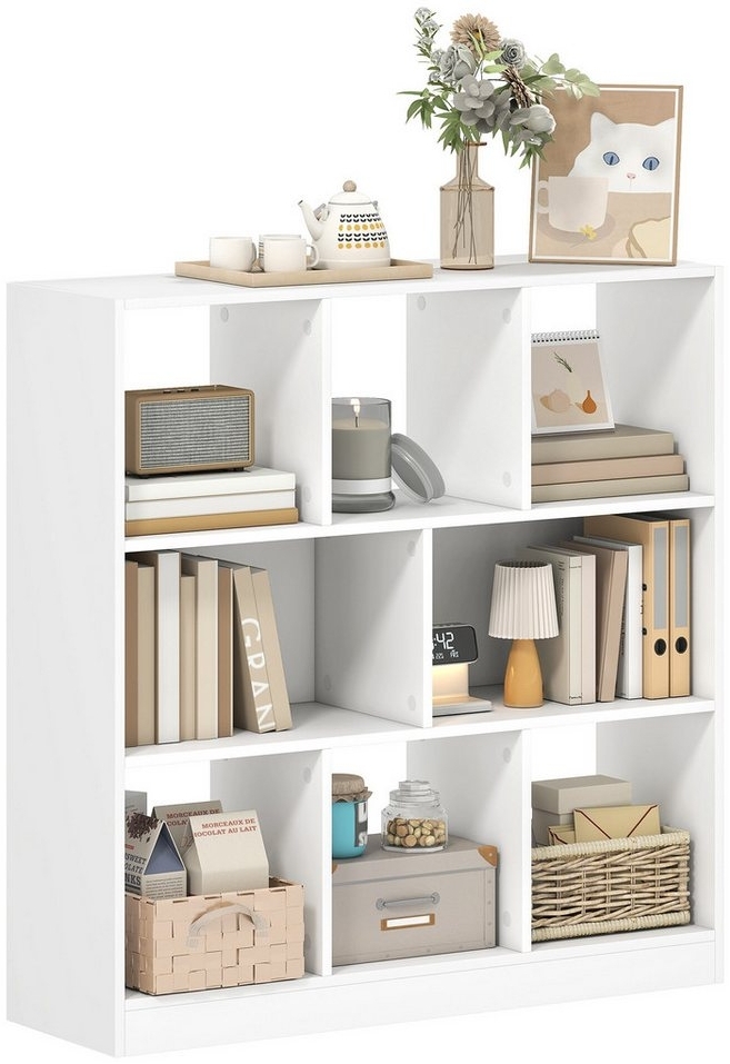Entdecken Sie das HOMCOM Bücherregal, das mit seinen drei großzügigen Einlegeböden und acht versetzten Trennwänden viel Platz für Bücher, Dekoration und Pflanzen bietet. Die Regalrückwand sorgt dafür, dass alles sicher an seinem Platz bleibt. Mit einem modernen Design in Weiß fügt sich das Regal harmonisch in verschiedene Wohnstile ein und ist ideal für Ihr Home-Office oder Wohnzimmer. **Highlights** - Drei großzügige Einlegeböden für optimale Stauraummöglichkeiten - Acht versetzte Trennwände für individuelle Aufbewahrung - Regalrückwand verhindert das Herausfallen von Gegenständen - Modernes Design passt zu verschiedenen Einrichtungsstilen - Hergestellt aus MDF-Holz für einfache Reinigung und Pflege **Produkteigenschaften** - Farbe: Weiß - Material: Spanplatte - Gesamtabmessungen: 97,5 x 30 x 100 cm - Belastbarkeit: 50 kg (ganz), 5 kg (Fachboden) - Montage erforderlich **Lieferumfang** - 1x3-stöckige Regal - 1 x Anleitung