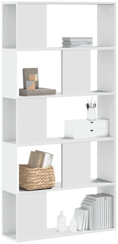 Das vidaXL Bücherregal in Weiß mit 5 Böden aus Holzwerkstoff bietet Ihnen reichlich Stauraum für Bücher, Deko und mehr. Das robuste Material ist feuchtigkeitsbeständig und langlebig. Die 5 Fächer sorgen für Ordnung, während die glatte Oberfläche die Reinigung erleichtert. Zudem kann das Regal vielseitig als Raumteiler eingesetzt werden. Eine Wandhalterung ist im Lieferumfang enthalten, um das Regal sicher zu befestigen. **Highlights** - Viel Stauraum mit 5 Fächern - Robustes und langlebiges Holzwerkstoffmaterial - Leicht zu reinigen - Trennwände für bessere Organisation - Vielseitig als Raumteiler einsetzbar **Produkteigenschaften** - Farbe: Weiß - Material: Holzwerkstoff - Abmessungen: 80,5 x 23,5 x 162,5 cm (B x T x H) - Maximale Belastbarkeit: 130 kg - Zusammenbau erforderlich **Lieferumfang** - vidaXL Bücherregal in Weiß mit 5 Böden - Wandhalterung - Montageanleitung (Schrauben und Dübel nicht enthalten)