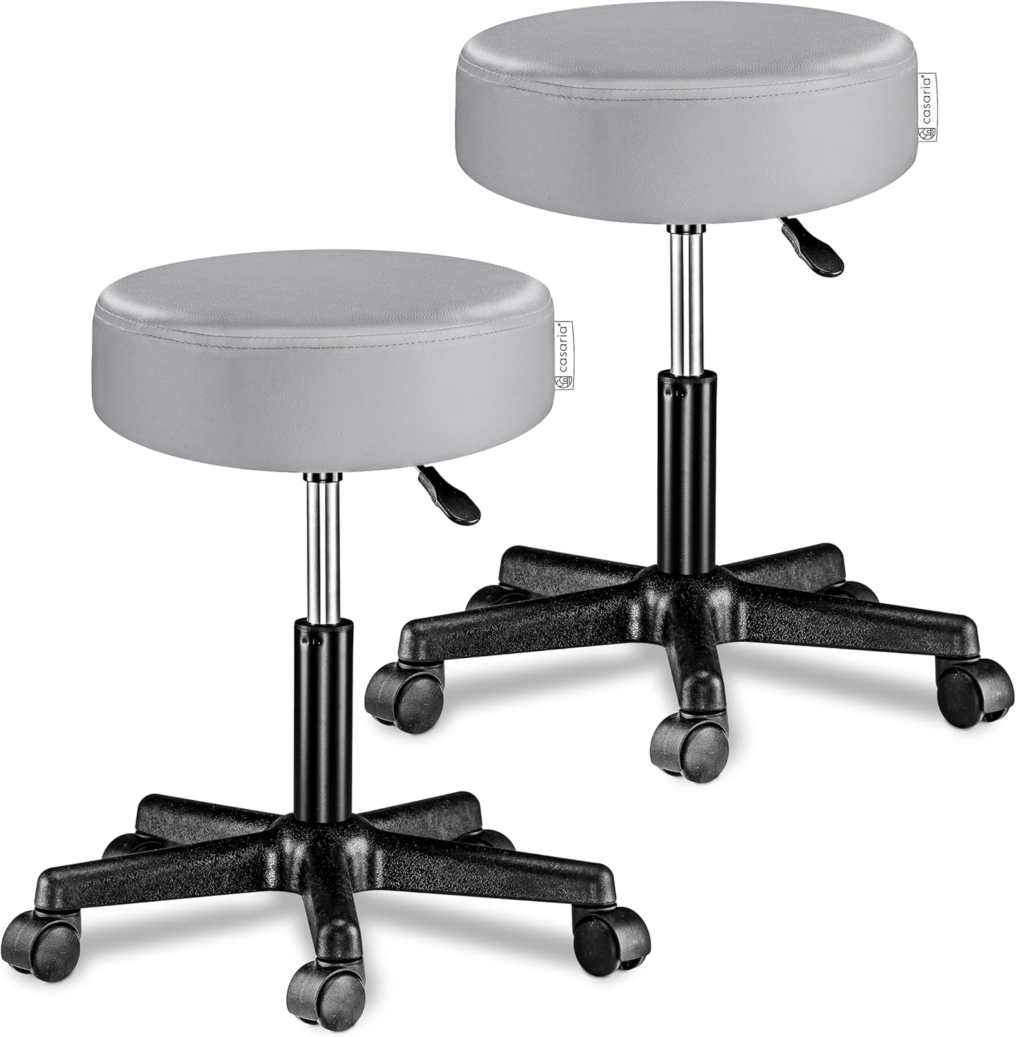 in BürohockerCasaria Rollhocker 2er Set Höhenverstellbar mit Rollen 46-60cm Sitzhöhe 10cm Polsterung 360° Drehbar Arbeitshocker Drehhocker Bürohocker Hocker Grau
