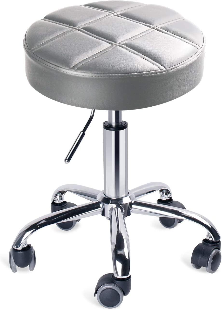 Leader Accessories Drehhocker höhenverstellbar Rollhocker Funktionaler Arbeitshocker Studiohocker im modernen Design Hellgrau(Sitz Φ35cm)