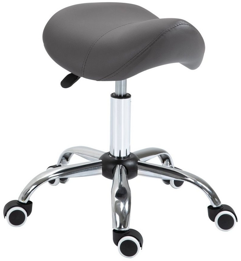 - Der ergonomische Drehhocker in Sattelform sorgt für ein aufrechtes Sitzen und entlastet die Wirbelsäule.