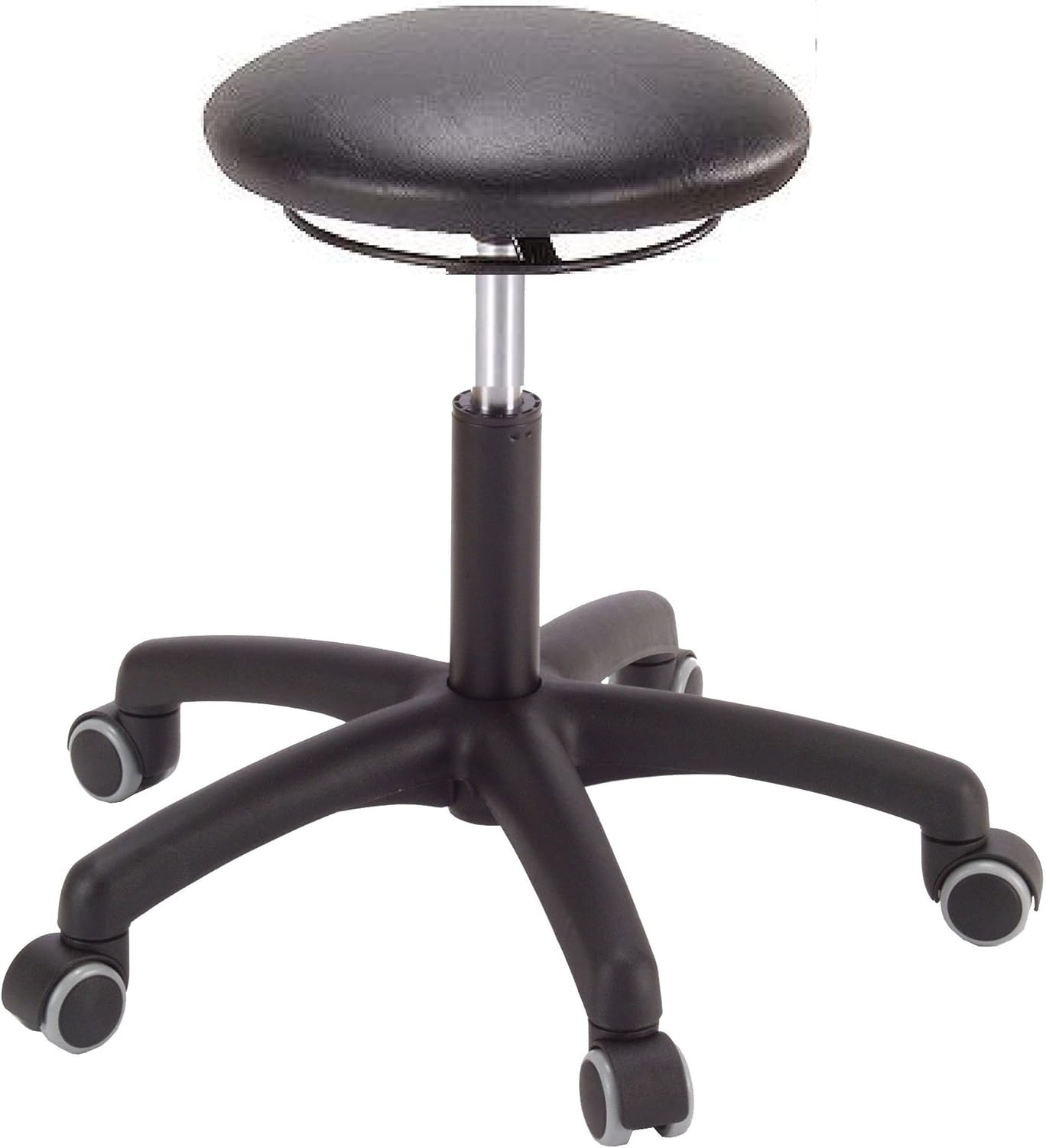 Ergonomischer Hocker von meychair, Modell 9056 A1S-TR-KL, bietet optimale Bewegungsfreiheit und Flexibilität für längere Arbeitseinsätze. Der Hocker verfügt über einen drehbaren Rundsitz aus schwarzem Kunstleder, der in der Höhe von 47 cm bis 60 cm verstellbar ist. Mit einem stabilen 5-Stern-Fuß aus Kunststoff und einem Durchmesser von 550 mm ist er für Nutzer bis zu 120 kg geeignet. **Highlights** - Ergonomisches Design für optimale Bewegungsfreiheit - Höhenverstellbar mittels Gasfeder für individuellen Komfort - Drehbarer Sitz für flexible Nutzung - Stabiler 5-Stern-Fuß für hohe Standfestigkeit - Leichtes Gewicht von 5,5 kg für einfache Handhabung **Produkteigenschaften** - Sitzform: Rundsitz - Breite des Sitzes: ca. 35 cm - Sitzhöhenverstellbereich: ca. 47-60 cm - Fußdurchmesser: ca. 550 mm - Rollen vorhanden: Ja - Montageart bei Lieferung: zerlegt - Farbe der Sitzfläche: schwarz - Farbe des Fußkreuzes: schwarz - Material der Sitzfläche: Kunstleder - Material des Fußkreuzes: Kunststoff - Max. Gewicht des Nutzers: 120 kg **Lieferumfang** - Hocker zerlegt - Montageanleitung