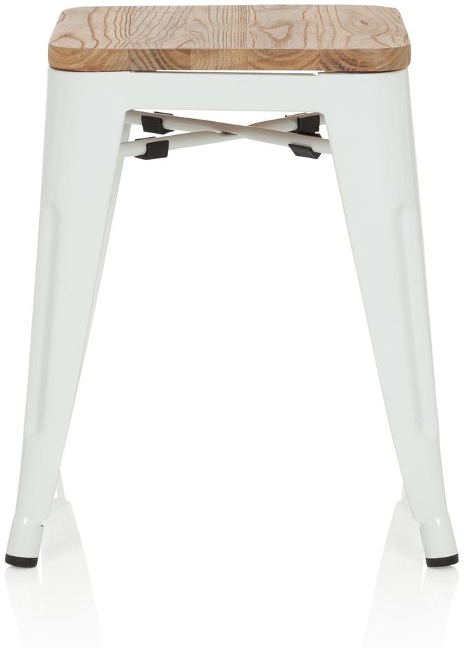 Der VANTAGGIO W ist ein klassischer und robuster Hocker, der aus hochwertigem Stahl und echtem Ulmenholz gefertigt ist. Mit seinem modernen Design im Industrial Style fügt er sich harmonisch in verschiedene Einrichtungsstile ein. Der Hocker ist stapelbar und eignet sich sowohl für den Einsatz zu Hause als auch in der Gastronomie. Ein stilvolles Möbelstück, das französisches Flair in Ihre Räumlichkeiten bringt. **Highlights** - Klassischer und robuster Hocker mit langer Tradition - Hochwertiger Stahlrahmen und Sitzfläche aus echtem Ulmenholz - Modernes Design im Industrial Style - Stapelbar und vielseitig kombinierbar - Geeignet für den Einsatz zu Hause und in der Gastronomie **Produkteigenschaften** - Material: Stahl, Ulmenholz - Farbe: Weiß - Abmessungen (H x B x T): 46 x 39 x 39 cm - Belastbar bis 150 kg - Stapelbar: Ja - Geeignet für den Innenbereich - Einfache Montage